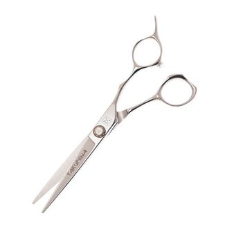 размер ножниц: 6 дюймов / 15.2 см высококачественная японская сталь марки 440С кольцо для большого пальца с большим смещением режущие полотна с тонкими кончиками convex - заточка режущей кромки (для скользящего среза) винтовая группа с системой Mini-click строенный полуоткрытый микроподшипник стопор-амортизатор со встроенным металлическим винтом литой упор для мизинца