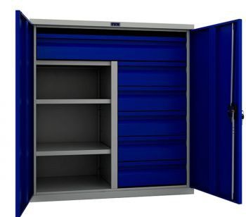 Габариты внешние, ммвысота - 1000ширина - 950глубина - 500 Ключевой замок Шкаф TC-1095 - 1 шт.; Перегородка TCD-900 - 1 шт.; Полка TCSh 95х47 - 2 шт.; Ящик TCF 42x45 - 5 шт Ящик TCF 87x45 - 1 шт. None