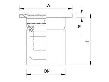 Wm150/110V1 – MINI однокорпусный вертикальный трап с квадратной решеткой, выпускное отверстие диаметром DN110 мм, в комплекте с трапом идет сифон, сито и решетка.