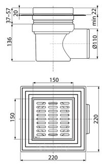 - Трап сливной горизонтальный 150*150 D110 по выгодной цене 2 450 р. руб.;