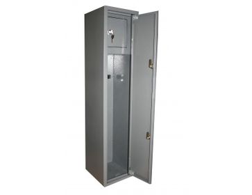 Корпус шкафа изготовлен из листового металла толщиной 1 мм, дверь толщиной 1 мм. В верхней части шкафа находится запираемое отделение (трейзер).За трейзером находится полость, таким образом трейзер не ограничивает высоту хранимого ствола.На задней стенке корпуса расположены отверстия для крепления сейфа к стене.В сейфе установлены 2 пластиковых ложемента. В дверь установлены 2 почтовых замка.Сейф формально удовлетворяет всем требованиям по хранению оружия и является одним из самых дешевых вариантов оружейных шкафов.Вес 14кг Цвет: Серый None