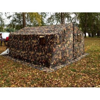 Каркасная армейская палатка с 2х скатной крышей, разделкой дымохода и москитными сетками на окнах.Палатка может эксплуатироваться во всех природно-климатических зонах, при любых погодных условиях в диапазоне температур окружающего воздуха от минус 50°С до плюс 50°С.Время развёртывания (свёртывания) палатки силами обученного личного состава в количестве 2-3-х человек: летом – 20 минут; зимой – 30 минут. None