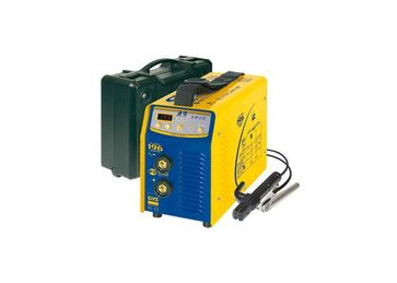 Источник Gysmi 196 FV, зажим для заземления, электрододержатель, кабели сварочные 2м, сетевой кабель с вилкой, пластиковый кейс.