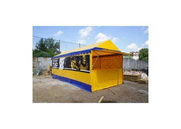 Тир представляет собой разборную конструкцию из металлического каркаса и тентовой ткани. Материал изготовления зависит от сезонности использования сооружения, на летнее время может быть использованы: Каркас: стальная труба d18 (оцинкованная труба). Тент: ткань Оксфорд 240 PU (пропитка 2000 мм)(20000руб) Для зимнего использования больше подходит прочный тентовый материал 650 гр./м. кв. различных цветов, каркас из стальной трубы(квадратная труба 20х20мм и 20х40мм), окрашенной порошковой краской (55 000). Цветовая гамма зависит от желания заказчика и наличия ткани на складе, возможно нанесение рисунков, надписей, логотипов.