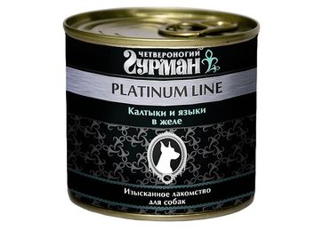 - Четвероногий гурман консервы для собак Платинум калтыки и языки в желе по выгодной цене 839 р. руб.;