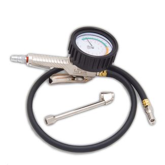 Пневматическая подкачка шин с манометром. 3-х функциональный: проверка давления, сброс давления до нужного значения, накачка до нужного значения Крупная легкочитаемая шкала Поворотный манометр на шарнирном соединении Насадка для подкачки колес Рабочий диапазон 200 PSI Длина шланга: 850 мм None