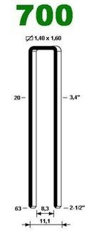 Тип скобы 700 Кол-во в упаковке 10 000 шт Длина скобы 63 мм Кол-во скоб в полоске 71 шт Стандартное покрытие скобы лакирование Сечение 1,40х1,60 мм Расстояние между ножками, внутренее 8,3 мм Наружнее 11,1 мм Скоба 700 может быть выполнена: электрогальв... Минимальная сумма заказа 999.00 руб.