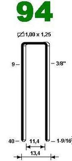 Тип скобы 94 Кол-во в боксе 3,5 000 штук Длина скобы 25 мм Кол-во скоб в полоске 100 шт Стандартное покрытие скобы лакирование Сечение 1,0х1,25 мм Расстояние между ножками, внутренее 11,4 мм Наружнее 13,4 мм Калибр проволоки 18 Скоба 94 может быть выпо... Минимальная сумма заказа 999.00 руб.