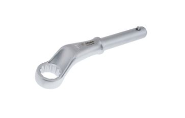 Ключ серии 1505 предназначен для работы с крепежом конструкций и техники, для ремонта и обслуживания крупногабаритной техники и конструкций, промышленности, сельского хозяйства, производства, строительства, станций технического обслуживания автомобильной и другой техники. Можно использовать ключ в тяжелых условиях под действием больших нагрузок. Для использования совместно с рычагом-трубой 1505PE18 Накидная рабочая часть ключа отогнутая на 700 позволяет работать в местах с ограниченным доступом к крепежу. 12-тигранный профиль накидной части универсален в работе с головками болтов или гайками как 6- ти, так и 12-тигранного профиля. Ключи изготовлены из инструментальной легированной хром-ванадиевой стали, соответствующей требованиям стандартов DIN3113, ISO 7738. None