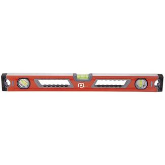 Применяется для проведения точной выверки горизонтальности и вертикальности различных поверхностей во время проведения отделочных работ. Упрочненный корпус изготовлен из алюминия, что придает уровню малый вес при высоких прочностных характеристиках. Оснащен двусторонней отфрезерованной рабочей поверхностью для достижения максимальной точности измерений. Две эргономичные рукоятки создают дополнительное удобство во время выполнения работ. Имеет три целые ударостойкие ампулы (вертикальная, горизонтальная и под углом 45 градусов). None