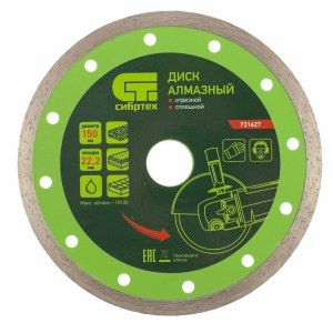 - Диск алмазный, отрезной сплошной, 115 х 22,2 мм, мокрая резка. СИБРТЕХ в каталоге Другой ручной инструмент в России;