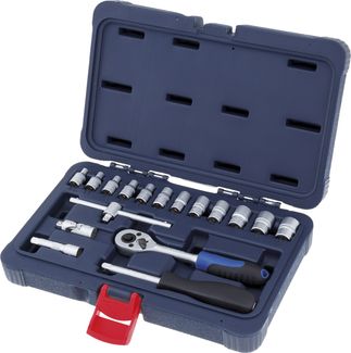 Набор торцевых головок и принадлежностей 1/4" (17 предметов) 1/4" Головки торцевые: 4, 4.5, 5, 5.5, 6, 7, 8, 9, 10, 11, 12, 13 мм 1/4" Ключ трещоточный с быстрым сбросом 1/4" Вороток Т-образный 125 мм 1/4" Кардан шарнирный 1/4" Удлинитель 50 мм 1/4" Отверточная рукоять Особенности: Компактный размер. Платиковый кейс. None