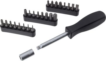 Набор бит с отверточной рукояткой, 26пр. Отверточная рукоятка 150мм, Битодержатель 1/4x1/4 Биты HEX: 2, 2.5, 3, 4, 5, 6, 7мм Биты шлиц: 3, 4, 5, 6мм Биты PH: PH0, PH1, PH2, PH3 Биты TORX BO: TH5, TH6, TH7, TH8, TH10, TH15, TH20, TH25, TH30 None Страна производства: Тайвань