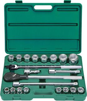 Головка торцевая шестигранная 19,21,22,23, 24,27,29,30,32, 36,38,41,46,50 мм-16 шт Трещотка с быстрым сбросом 500 мм Шарнирный вороток 3/4" 500мм Удлинитель 100 мм Удлинитель 200, 400 мм None