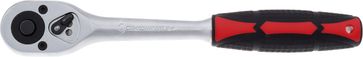 Дополнительные особенности: изготовлен из хром-ванадиевой стали, снабжен маслобензостойкой удобной рукоткой и быстрый сбросом, а также флажковым переключателем, что делает работу с данной трещоткой более удобной.
