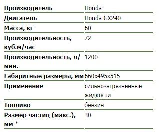Компактное оборудование построено на базе надежного бензинового мотора, обладающего производительностью 1640 л/мин и максимальным напором 26 м. Преимущества модели: