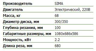 Данное оборудование оснащается сегментным алмазным диском, который приводится в движение электроприводом. Питание осуществляется от сети напряжением 220 В. На модель устанавливаются диски диаметром 300/350 мм.