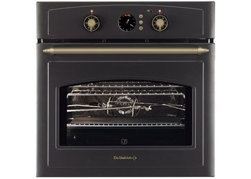 Электрический независимый духовой шкаф De Dietrich DOP 1055 E черного цвета в стиле ретро достаточно многофункционален, хотя у этой модели всего шесть режимов приготовления, чуть меньше чем у модели De Dietrich DOE 900 X. None