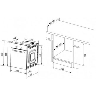 Утапливаемые ручки, объем 55л, LED таймер, 9 функций (3D конвекция, нижний нагрев с 3D конвекцией, верхний и нижний нагрев с конвекцией, традиционный, нижний нагрев, турбо гриль, турбо гриль с конвекцией, подсветка, размораживание), двойное остекление дверцы, традиционная очистка, в комплекте 1 решетка и 1 противень, хромированные направляющие, тонированное матовое стекло.