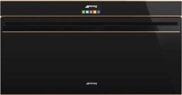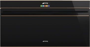 Компактный духовой шкаф Smeg Dolce Stil Novo SFPR 9604NR. Цвет: черное стекло. 90см. Высота 48см. Цвет фурнитуры: медный Габариты (В х Ш х Г), см: 47.5х89.6х57.2 Полезный объем, л: 85 Вертел: нет Гриль: есть Конвекция: есть Встроенная СВЧ: нет Встроенная пароварка: нет Управление: электронное Таймер: электронный Подсветка духовки: есть Количество режимов работы: 9 Очистка: пиролитическая Принадлежности: Телескопические направляющие ( 1-уровневые ) полного выдвижения, Решетка с задним упором, Глубокий эмалированный противень (40 мм). None Возможен самовывоз.