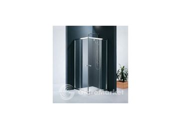 Квадратный душевой угол: две сдвижные двери; фурнитура — блестящее серебро; стекло прозрачное; толщина стекла 5мм. Душевой поддон дополнительно.
