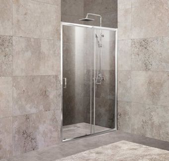 Монтаж: в нишу Возможная установка: на поддон, на пол Высота: 1900 мм Ориентация: универсальная Конструкция двери: раздвижная Исполнение полотна двери: прозрачное (C) Количество секций двери: 2 Толщина полотна двери: 5 мм Цвет профиля: хром Материал полотна двери: закаленное стекло, стандарт EN12150-1:2000 Материал профиля: анодированный алюминий, стандарт DIN17611 2007 Регулировка ширины: предусмотрена за счет боковых профилей Крепления полотна двери: двойные подшипниковые ролики Дополнительная информация: поддон приобретается отдельно Ресурс эксплуатации: 15 лет Гарантия: 3 года с даты продажи, за исключением резинотехнических изделий -на резинотехнические изделия (силиконовые уплотнители, магнитные уплотнители, ) 1 год с даты продажи None