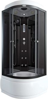 тип: кабина поддон: высокий, 45 см форма поддона: 1/4 круга размеры поддона: 90 x 90 cм высота кабины: 215 см фронтальные стекла: серые тонированные задние стекла: черные центральная панель: стекло черное профиль: черный алюминиевый ролики дверей: регулируемые ручки дверей: хромированные None Страна производства: Китай Есть доставка.