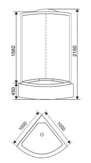 тип: кабина поддон: высокий, 45 см форма поддона: 1/4 круга размеры поддона: 100 x 100 cм высота кабины: 215 см фронтальные стекла: серые тонированные задние стекла: нет центральная панель: армированный ABS-пластик профиль: хромированный алюминиевый ролики дверей: регулируемые ручки дверей: хромированные None Страна производства: Китай