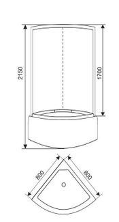 тип: кабина поддон: высокий, 45 см форма поддона: 1/4 круга размеры поддона: 80 x 80 cм высота кабины: 215 см фронтальные стекла: матовые фактурные задние стекла: белые матовые центральная панель: пластик белый профиль: белый алюминиевый ролики дверей: регулируемые ручки дверей: белые None Страна производства: Китай