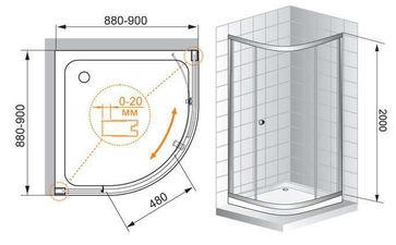 Монтаж: пристенный в угол Возможная установка: на поддон, на пол Высота: 2000 мм Форма: четверть круга Ориентация: универсальная Радиус: 550 мм Конструкция двери: раздвижная Исполнение полотна двери: прозрачное (C), рифленое PUNTO (P) Количество секций двери: 1 Толщина полотна двери: 6 мм Цвет профиля: хром Материал полотна двери: закаленное стекло, стандарт EN12150-1:2000 Материал профиля: анодированный алюминий, стандарт DIN17611 2007 Регулировка ширины: предусмотрена за счет боковых профилей Крепления полотна двери: двойные подшипниковые ролики Дополнительная информация: поддон приобретается отдельно Ресурс эксплуатации: 15 лет Гарантия: 3 года с даты продажи, за исключением резинотехнических изделий -на резинотенические изделия (силиконовые уплотнители, магнитные уплотнители, ) 1 год с даты продажи None