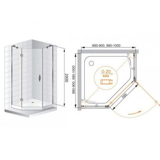 Душевой уголок Cezares Bergamo P1 (90x90) (правый) прозрачное стекло
