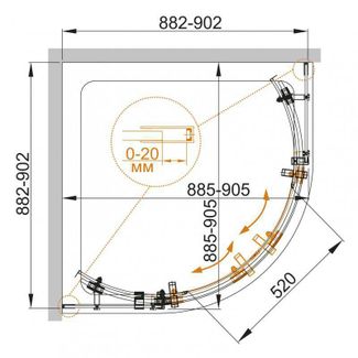 Монтаж: пристенный в угол Возможная установка: на поддон, на пол Высота: 1950 мм Форма: четверть круга Ориентация: универсальная Радиус: 550 мм Конструкция двери: раздвижная Исполнение полотна двери: прозрачное (C) Количество секций двери: 2 Толщина полотна двери: 8 мм Цвет профиля: хром Материал полотна двери: закаленное стекло, стандарт EN12150-1:2000 Материал профиля: анодированный алюминий, стандарт DIN17611 2007 Регулировка ширины: предусмотрена за счет боковых профилей Крепления полотна двери: усиленные ролики Дополнительная информация: поддон приобретается отдельно, усиленный порожек для герметичности Ресурс эксплуатации: 15 лет Гарантия: 3 года с даты продажи, за исключением резинотехнических изделий -на резинотенические изделия (силиконовые уплотнители, магнитные уплотнители, ) 1 год с даты продажи None
