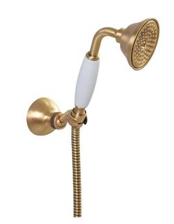 Материал: латунь Исполнение: хром, бронза, золото 24 карат Тип подводки: 1/2" Оснащение: душевая лейка, настенный держатель, шланг для душа Размер лейки: 7,5 см Длина шланга: 150 см Рабочий интервал давления в водопроводной сети: 0,5-6,0 Атм Гарантия: 5 лет с даты продажи (за исключением резиновых уплотнителей, шлангов, переключателей)