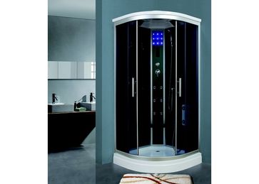 закрытая кабина форма четверти круга поддон из акрила стенки кабинки из стекла раздвижные двери гидромассаж встроенное радио Размеры: 100x100x220 см None