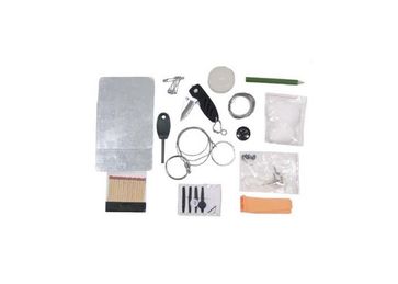 Описание: with knife, whistle, wire-saw, wire, fishing-set, cotton wool, matches, candle, pencil, mini-compass , sew-set, safety pin, fire starter, 2 mirror, survival-instruction, Размер: 12 x 10 x 3,5 см None