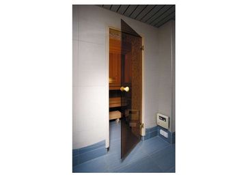 Двери для саун Andres (Эстония) Двери для саун производятся из закаленного стекла толщиной 8 мм. которое в 5 раз прочнее обычного стекла и, учитывая пожелания клиентов, коробка двери сделана из клееной осины без сучков. Коробка не коробится при колебания температуры, а также не выделяет древесную смолу