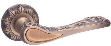 Ручка дверная Classic RENZ INDH 602-10 MAB CF "Сантина", брон ант. мат коф, декор. роз.