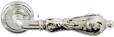 Ручка дверная Extreza GRETA (Грета) 302 розета R01 натуральное полированное серебро + черный F24