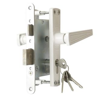 Закажите Замок врезной цилиндровый с защёлкой в комплекте с ручкой ЗВ4-3.01 (белый), 4 кл. у компании ИП Стребков В В в России на портале Alloy:
