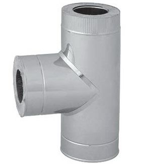 Предназначен для изменения направления дымового канала, используется в местах присоединения теплогенерирующего аппарата к основному каналу. Выполняет функцию очистного приспособления, облегчает обслуживание дымохода.