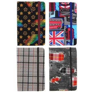 Записная книжка А6 80л., тв.обложка, резинка, закладка, PU, бумага, 4 дизайна