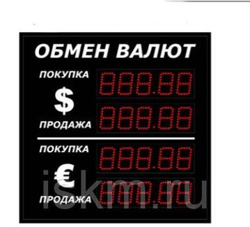 - Табло курса валют с пятизначным индикатором на 2 валюты, яркость 3.0 Кд (для солнца) по выгодной цене 31 270 р. руб.;