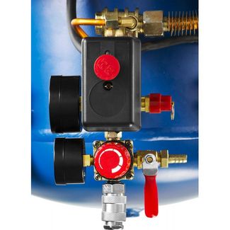 Ременной профессиональный компрессор с поршневым типом пневматического механизма и масляным типом смазки Ременной привод увеличивает срок службы за счет повышения износоустойчивости деталей компрессора: - меньшее число оборотов по сравнению с прямым приводом - сглаживает пиковые нагрузки на двигатель - лучшее охлаждение двигателя, т.к. не поступает тепло от компрессора - два мощных чугунных цилиндра и алюминиевая головка Поршневой тип компрессора наиболее производителен среди другим типов Масляный тип смазки продлевает срок службы наиболее важной части изделия цилиндро-поршневой группы Выключатель давления обеспечивает автоматическое включение/выключение изделия при расходе сжатого воздуха Защита от перегрузок Восстанавливаемый термопредохранитель Сменный воздушный фильтр на входе защищает цилиндро-поршневую группу от абразивного износа Два типа штуцеров «елочка» и быстросъемник ¼" для подключения рабочего инструмента делают изделие универсальным Возможность замены штуцера «елочка» на любой другой штуцер с внутренней резьбой ½" Контроль давления в ресивере и на выходе при помощи двух манометров Раздельная регулировка расхода воздуха через каждый штуцер позволяет настраивать и контролировать независимую работу двумя подключенными инструментам Механический предохранитель клапан высокого давления Шумозащитный пластиковый кожух Эргономичная ручка и колеса для удобства транспортировки Возможность подсоединения дополнительного ресивера или штуцера