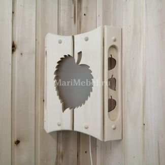 Абажур деревянный с названием «Липа». Дерево в интерьере – это больше, чем натуральный экологичный материал. Природная древесина привносит в помещения нечто особенное – неповторимое, красивое, одухотворенное. Если отделка помещений вашей бани или сауны выполнена по большей части в дереве, обязательно обратите внимание на данный абажур оригинальной модели. Он имеет достаточную глубину, средние размеры и гармонично впишется в интерьер вашей бани или сауны. Липовый листок является главным его украшением и делает дизайн изделия оригинальным.