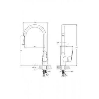 • Картридж D-35 (RSH102) с керамическими пластинами • Высота смесителя - 377 мм. • Излив поворотный (360гр.), 186 мм. • Высота излива (до аэратора) - 274 мм. • Пластиковый аэратор с нержавеющим корпусом • Угол наклона аэратора - 12 гр. • Гайка присоединительная • Гибкая подводка с латунными гайками 35см. - 2 шт. • Металлическая ручка