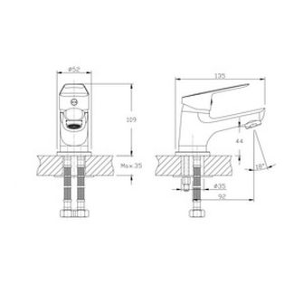 • Картридж D-35 (RSH102) с керамическими пластинами • Высота смесителя - 109 мм. • Излив литой, неповоротный, 92 мм. • Высота излива (до аэратора) - 44 мм. • Пластиковый аэратор с нержавеющим корпусом • Угол наклона аэратора - 18 гр. • Универсальная присоединительная группа (шпилька - 2шт). • Гибкая подводка с латунными гайками 35см. -2 шт. • Металлическая ручка