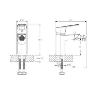 • Картридж D-35 (RSH101) с керамическими пластинами • Высота смесителя - 150 мм. • Излив литой, неповоротный, 124 мм. • Высота излива (до аэратора) - 81 мм. • Пластиковый аэратор с нержавеющим корпусом (поворотный) • Угол наклона аэратора - 7 гр. • Универсальная присоединительная группа (шпилька - 2шт). • Гибкая подводка с латунными гайками 35см. - 2шт. • Металлическая ручка