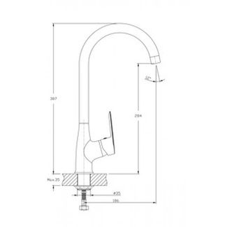 • Картридж D-35 (RSH102) с керамическими пластинами • Высота смесителя - 387 мм. • Излив поворотный (360гр.), 186 мм. • Высота излива (до аэратора) - 284 мм. • Пластиковый аэратор с нержавеющим корпусом • Угол наклона аэратора - 12 гр. • Гайка присоединительная • Гибкая подводка с латунными гайками 35см. - 2 шт. • Металлическая ручка