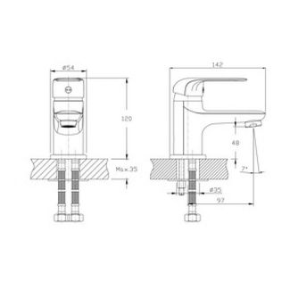 • Картридж D-35 (RSH102) с керамическими пластинами • Высота смесителя - 120 мм. • Излив литой, неповоротный, 97 мм. • Высота излива (до аэратора) - 48 мм. • Пластиковый аэратор с нержавеющим корпусом • Угол наклона аэратора - 7 гр. • Универсальная присоединительная группа (шпилька - 2шт). • Гибкая подводка с латунными гайками 35см. - 2 шт. • Металлическая ручка