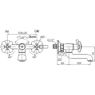 Технические характеристики смесителя BelBagno Slip SLI-VAS-CRM хром для ванны: